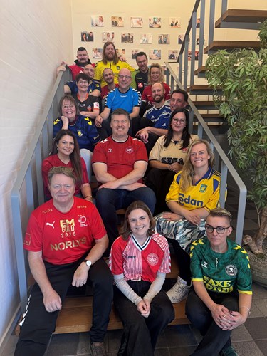 Today, everyone is proudly wearing their football jerseys to show support. For every jersey worn, Kementec is making a donation to The Danish Childhood Cancer Foundation.